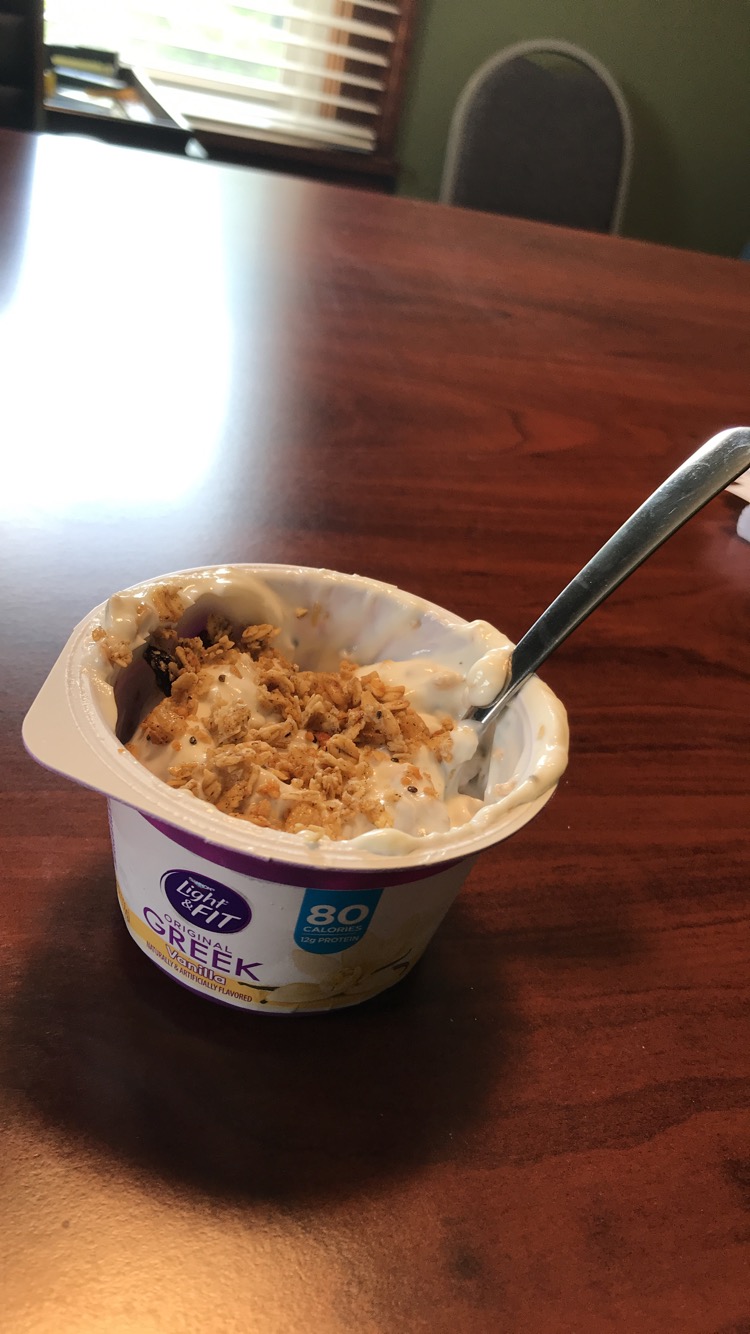 So simple but so good and filling! This is my go to lunch lately! Simply changing the granola brand/flavor makes this meal one that never gets old for me!
