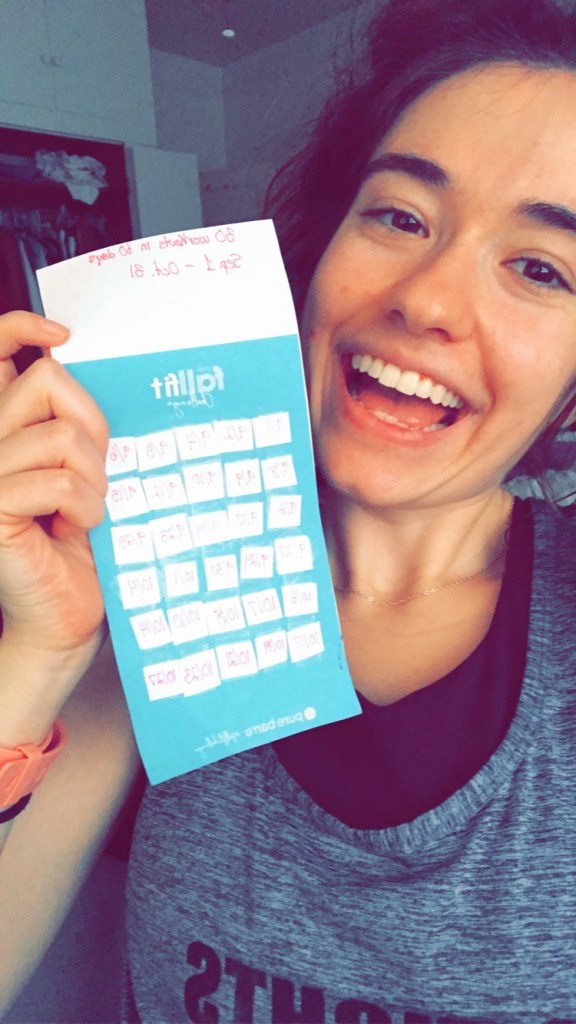 I hit my BMI goal on April 18th, 2019. It was amazing, but a little scary at the same time. I began to think, “What now…? What should my new goal be?” Eventually, I decided to focus on fitness. I wanted to run longer and faster, so I continued with that goal through the Summer of 2019. At the beginning of the school year (Fall 2019), I knew I needed to add toning workouts to my routine. I researched workout programs I could do to tone my body, and I decided to try Pure Barre OnDemand (now known as “Pure Bare Go” ) because 1) it would allow me to workout any time in my own home; 2) it focused on long, lean muscle build; 3) it seemed fun :). I struggled with Pure Barre at first, but I eventually got the hang of it and really enjoyed it!