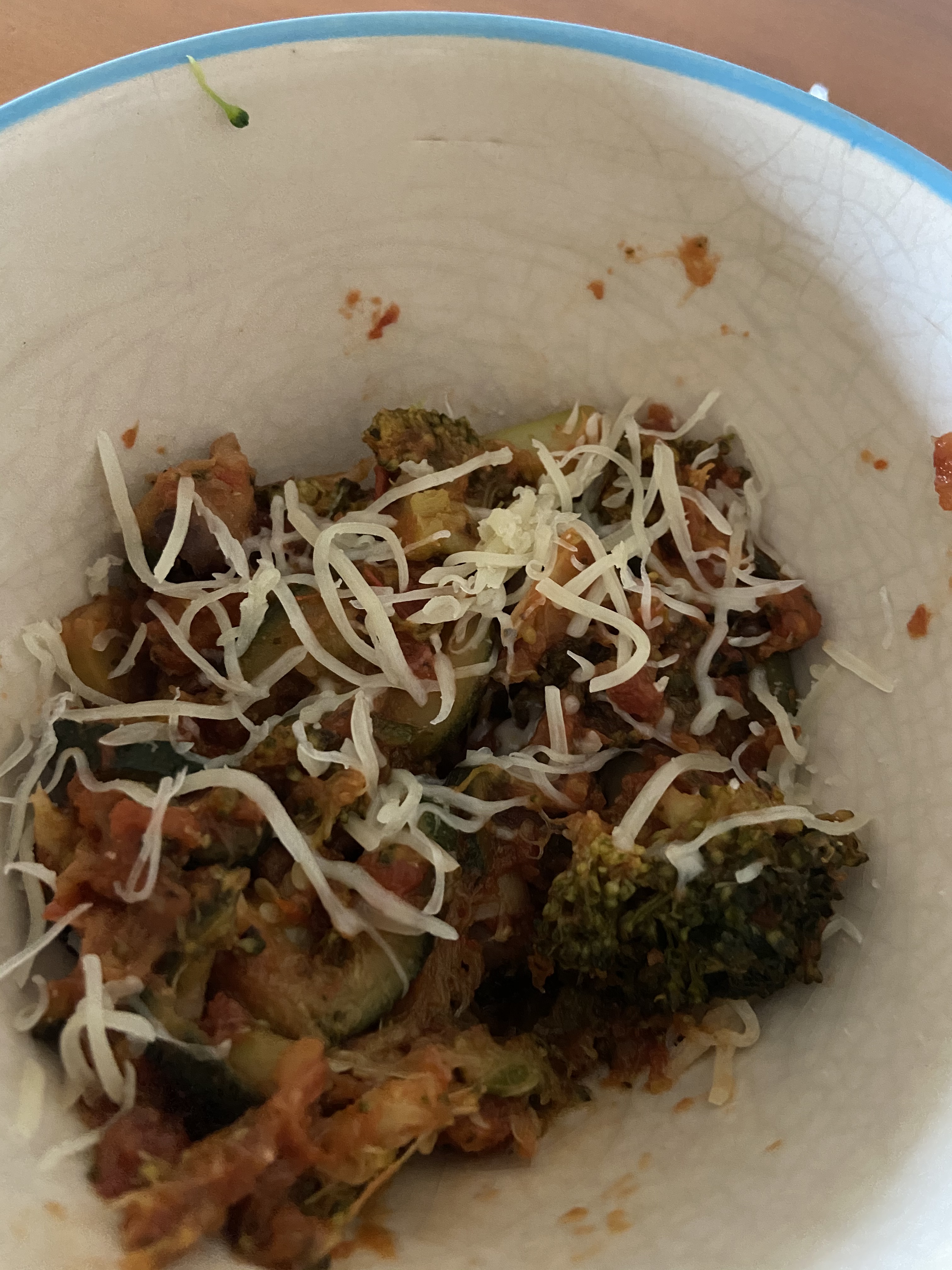 • (I don’t have much time, so I thawed a bag of frozen zucchini, broccoli & mushrooms)