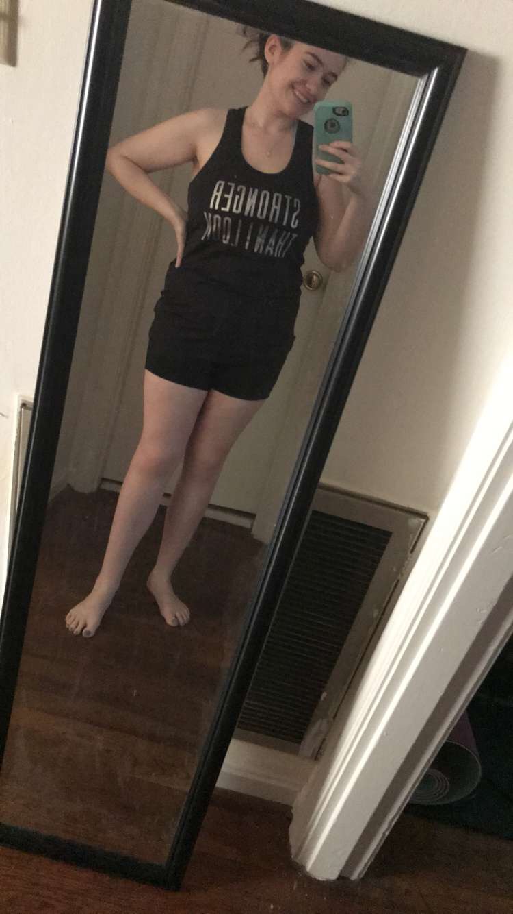 Around February 2019, I knew I needed to make a change beyond diet. So, I bit the bullet and started working out. I have a treadmill at my house, so I started by running at 5.5 speed for 3-minute intervals until a mile and a half of running, and then I did sit-ups in sets. When I first started, my sit-ups rule was “go until you can’t go, then do 5 more,” and repeat that number 3 more times. It was hard, and I definitely took breaks and I dreaded workout time. However, I was determined to workout 5 times a week, and I am very proud that I maintained that all semester until finals week (studying comes first :/). As time went on throughout the semester, I would just bump up my levels to whatever I felt was reasonable. By the end of the semester, I was doing sprints at a speed of 7 for 2-minute intervals for 2 miles and four sets of 40 sit-ups.